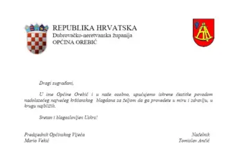 U ime Općine Orebić građanima su blagdan Uskrsa čestitali predsjednik Općinskog vijeća Mario Vekić i načelnik Tomislav Ančić.