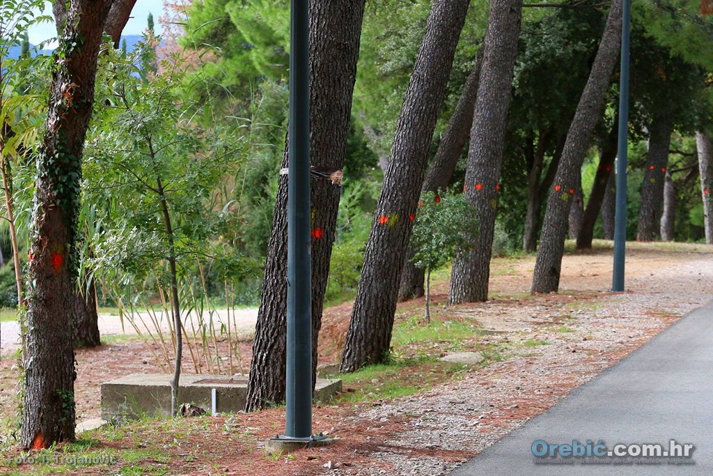 Orebić, 10.11.2016. – Mještani i ljubitelji Orebića uzbunili su se nakon što je prekjučer obilježeno 27 stabala na području iznad Aminess grand hotela Orebić – sumnjajući da su stabla predviđena za sječu.