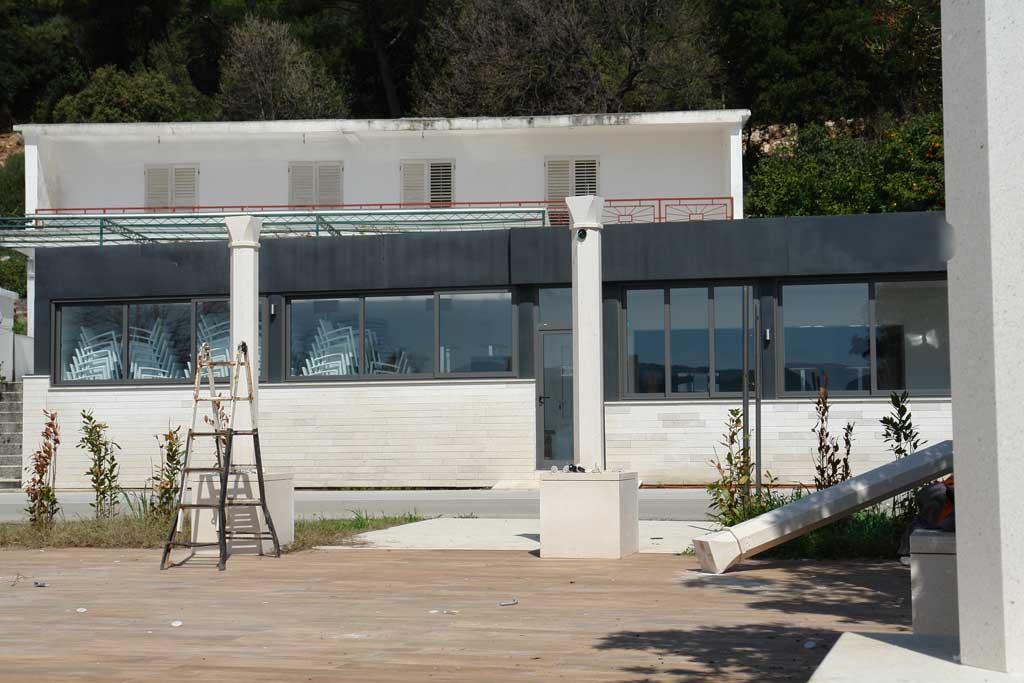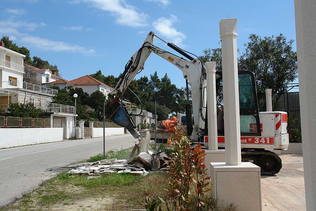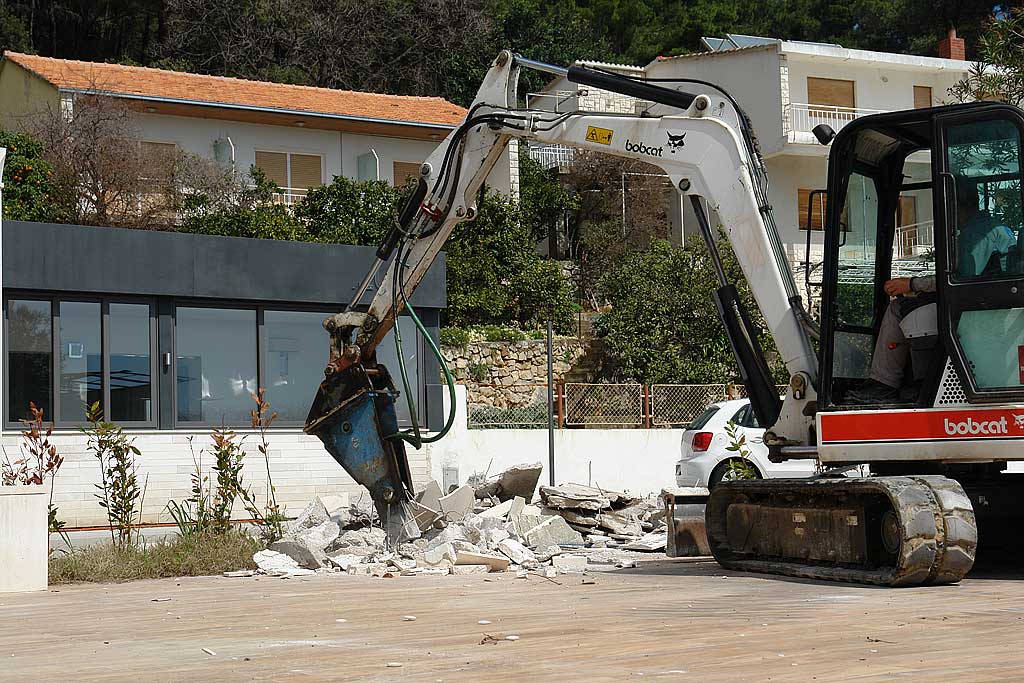 Bageri stigli na Pelješac. Danas se uklanja terasa ugostiteljskog objekta u Perni.