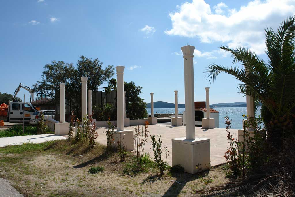 Ugovorni izvođači Ministarstva graditeljstva i prostornoga uređenja započeli su danas s uklanjanjem terase s nadstrešnicom u Perni, neposredno uz more. Radovi se izvode pod nadzorom građevinskog inspektora, uz nazočnost interventne policije, koja danas nije imala pravu intervenciju jer strani investitor objekta nije niti nazočan radovima.