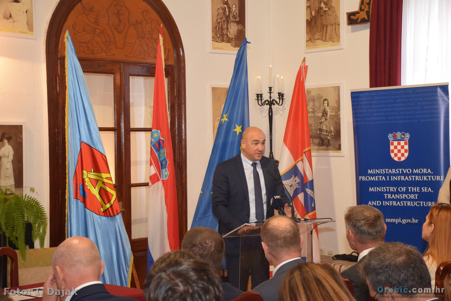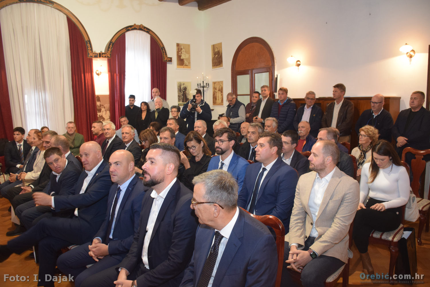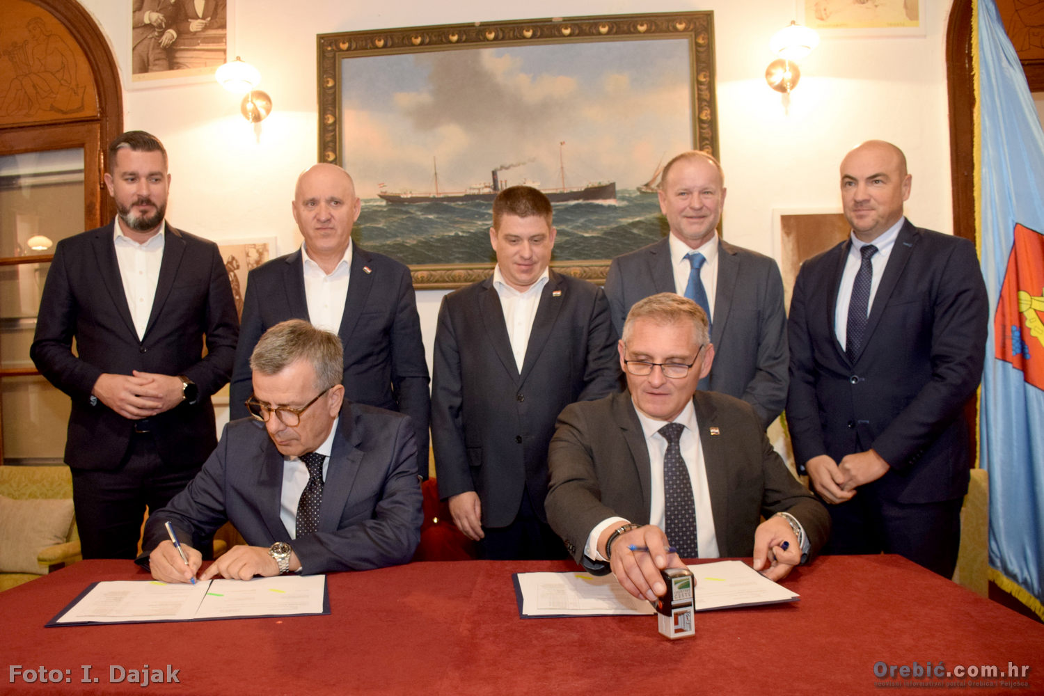 Orebić, 21. listopada 2025. Danas je u 12h u prostoru čitaonice Napredak u Pomorskom muzeju u Orebiću svečano potpisan ugovor za izgradnju obilaznice Orebića.